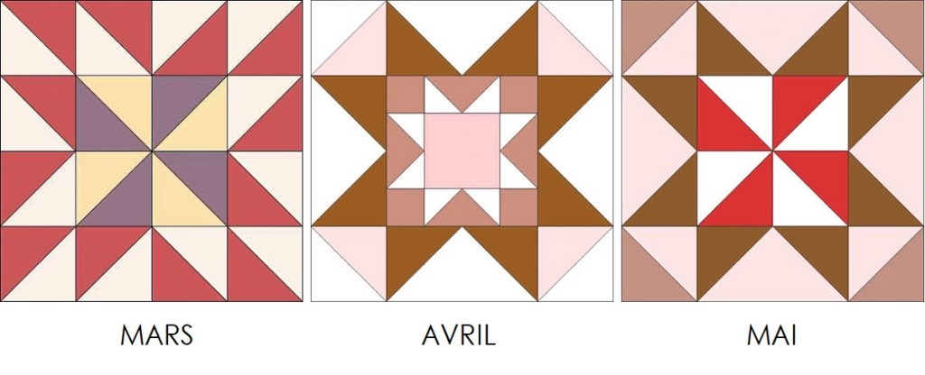 Face à ce genre de situation, pas question de gâcher du tissu pour coudre un bloc qui me déplait. Je préfère laisser passer l’étape et attendre… Si les étoiles suivantes sont plus à mon goût, je continue – tout en cherchant une solution pour modifier celle de mars. Sinon j’en serai quitte pour lâcher l’affaire et coudre des housses de coussins avec mes deux premiers blocs.