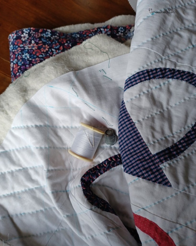 J’admire toujours ton quilting. Après de nouveaux essais, avec ou sans cuillère, avec ou sans tambour, à la machine ou pas, le revisionnage de tutos etc, la partie est loin d’être gagnée ! C’est toujours aussi moche !