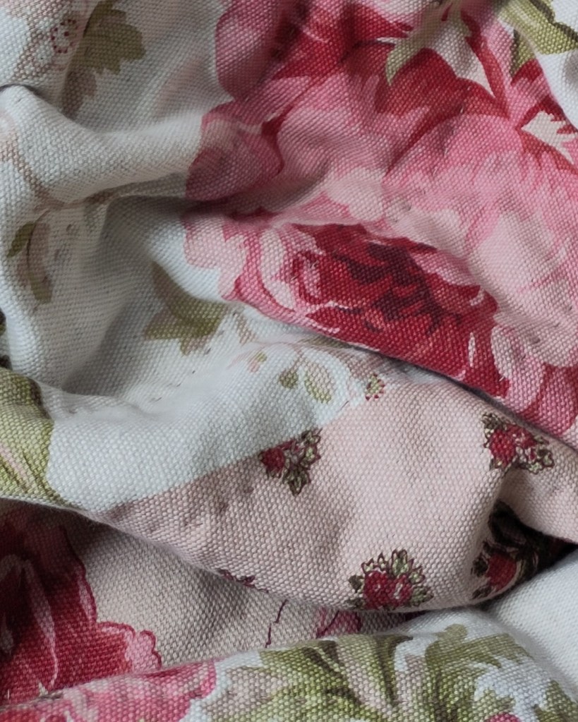 En principe, le patchwork consiste à coudre ensemble différentes pièces de tissu pour former un motif. Lorsque Sophie me contacte à l’automne dernier, c’est ce qu’elle a en tête : un mélange d’imprimés fleuris et de carreaux dans des couleurs douces. Au fil de nos échanges téléphoniques, Sophie se souvient d’un grand coupon de tissu fleuri vintage qui lui a été offert par une personne chère à son cœur.