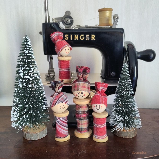 Puis sur ma lancée, j’ai aussi bricolé ces petits lutins, habillés dans des chutes de chemises écossaises.