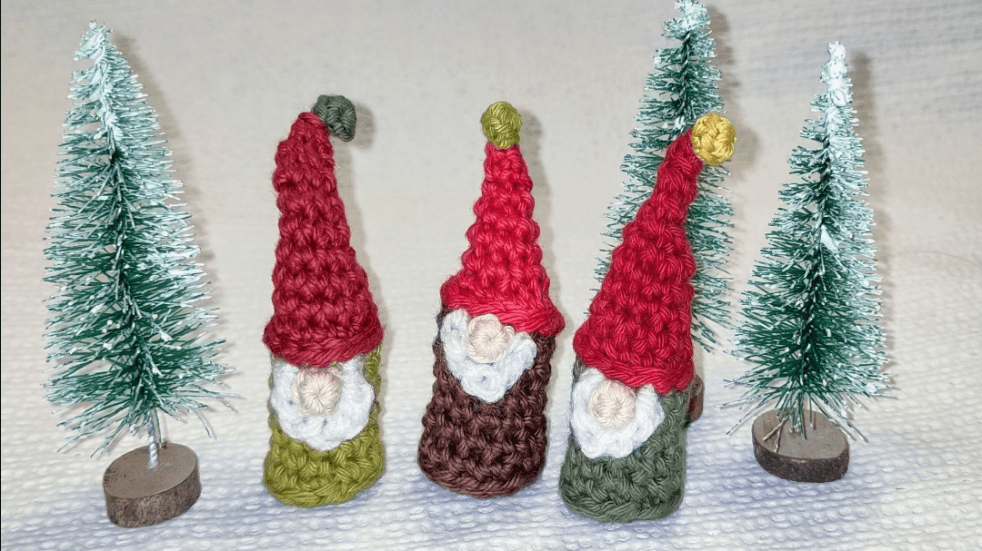 Ces trois petits gnomes se joignent à moi pour vous souhaiter un joyeux Noël ! Je vous embrasse PS: le tutoriel est disponible ici https://mrsmicawber.blogspot.com/2019/11/gnomes-of-gnorth-free-crochet-pattern.html