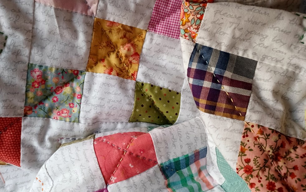 Utiliser des chemises recyclées en patchwork pour coudre un quilt en chaine irlandaise