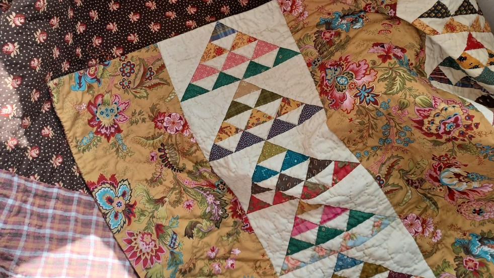 À l'heure où les oies sauvages se rassemblent pour entamer leur migration annuelle, je vous propose de jeter un petit coup d'œil à Gathering of Geese – en VF, Rassemblement d'oies – mon ouvrage en cours. Sur le front du patchwork, l'été a été productif. Le rythme de la rentrée est plus difficile à mettre… Lire la suite Ouvrage de vacances